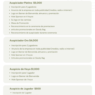 Les invitamos a explorar las diversas opciones de auspicio que hemos diseñado para maximizar los beneficios para su empresa o comprar un boleto para participar del torneo entrando al area de "Eventos" dentro de nuestra página web.
